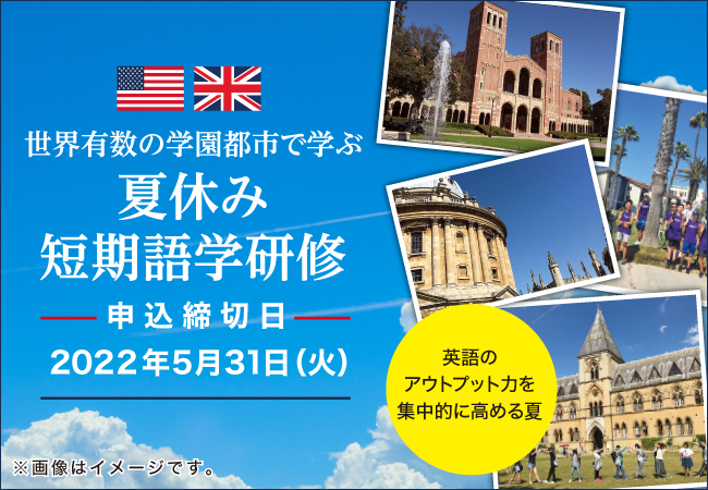 「世界有数の学園都市で学ぶ 夏休み短期語学研修」(オックスフォードコース/ロサンゼルスコース)へのご参加を検討されている方を対象として、オンライン説明会を開催いたします(要事前予約)。ぜひお気軽にご参加ください。