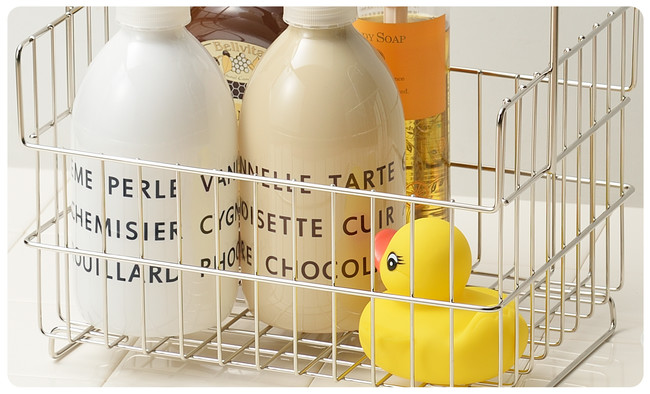 ・中身を見やすいサイズの網目は、お風呂用おもちゃはもちろん、ボトルのラベルなどもしっかり見えて、中身の取り違いを減らせます。