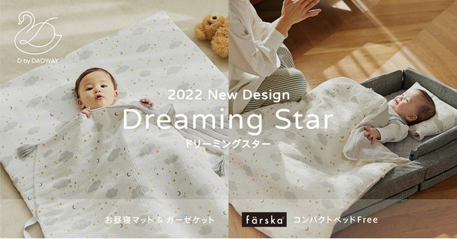 NEWテキスタイル「ドリーミングスター」のデビューを記念して、『D by DADWAY』のInstagramにてプレゼントキャンペーンを開催。お昼寝マットセットを3名さまに、ガーゼスタイを10名さまにプレゼントいたします。