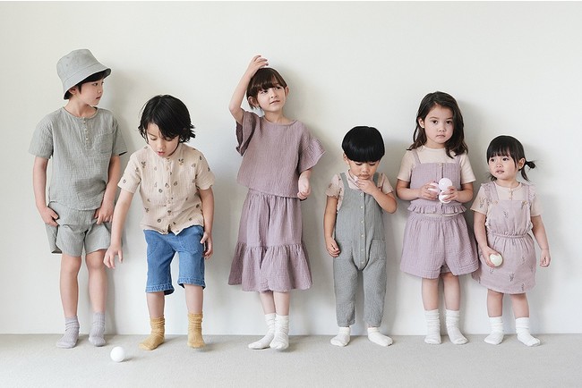本コレクションは、オーガニックコットンやオーガニックリネンなど、よりサステナブルかつ高品質な素材を使用しており、落ち着いたカラーリングと洗練されたデザインが特徴で、そのデザイン性と品質の高さから毎シーズン高い支持を得ています。本コレクションの2022年春夏展開アイテムには、ラベンダーやグレーグリーン、ライトベージュといった柔らかく可愛らしいニュアンスカラーを基調とし、肌触りのよいコットンのワッフルジャージー素材や、リネン素材、また、パイル地を使用した着心地の良いアイテムが揃います。更に本コレクションでは、遊び心溢れるイラストが描かれたアイテムに加え、ベビー(70-105cm)とキッズ(90-140cm) で、同系色、同素材のアイテムを数多く取り揃えているため、兄弟姉妹、友達同士でリンクコーデを楽しむことができるのも魅力です。