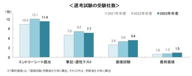 ○一人あたりのエントリー社数の平均は22.6社。前年同期調査(24.4社)を約2社下回る
