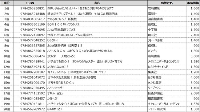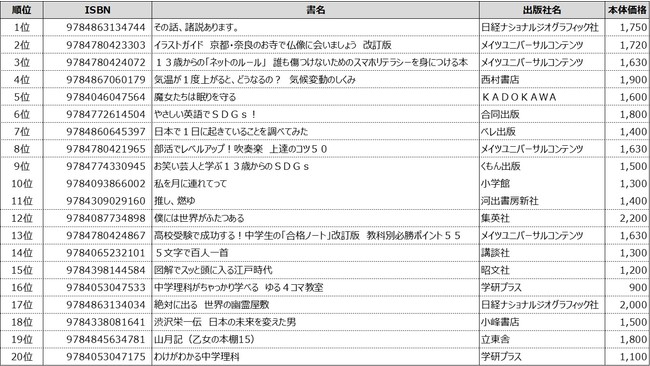 セット部門第1位は、『SDGsのきほん 未来のための17の目標』(ポプラ社)でした。上位20位内の約半数がSDGs関連図書となり、昨年に引き続き、SDGsへの関心の高さがうかがえる結果となりました。