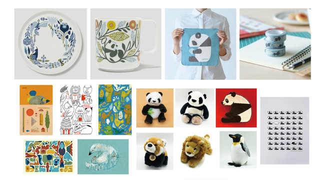 展覧会の開催を記念して、福田さんのかわいいパンダをモチーフにオリジナルの刺繍バッヂをつくりました。他にも「アドベンチャーワールド」をはじめ、福田さんが手がけた選りすぐりのかわいい動物グッズをお求めいただけます。お気に入りの動物をみつけて、ぜひ、おうちに連れて帰ってください。