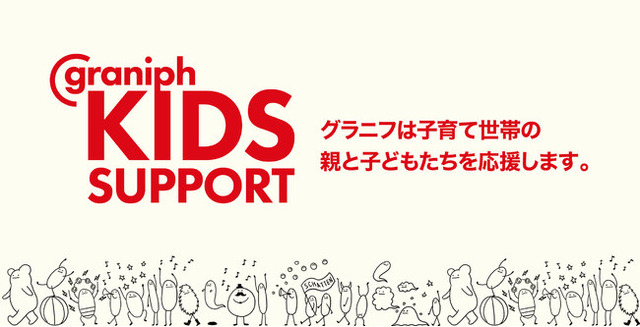 株式会社グラニフ(本社:東京都渋谷区、代表取締役社長:村田昭彦、以下グラニフ)は子育て世帯の親と子どもたちを応援いたします。4月18日よりグラニフ国内店舗にて「KIDS応援キャンペーン」を開催。また「graniph GACHA イベント」、「子育て支援パスポート事業」の応援といった3つの取り組みを行います。