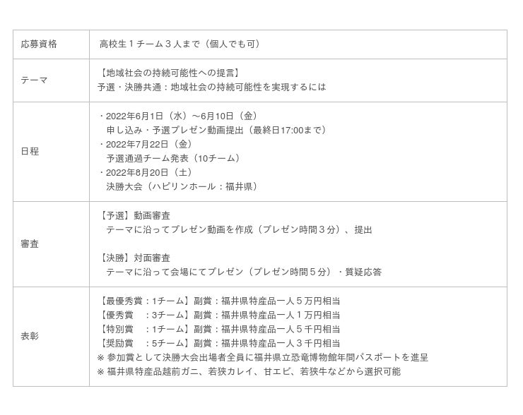 昨年は全国29都道府県409チームがエントリー。決勝では10チームが動画審査+質疑応答を行い、頌栄女子学院高等学校(東京都)が優勝しました。今年の決勝は福井県のパビリンホールにて開催。審査員、観客に向けて熱い念いをプレゼンします!