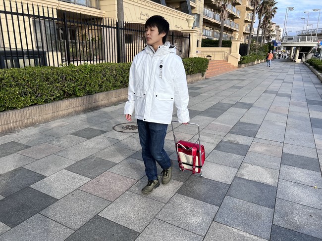 通学は旅行のようにキャリー型。スティック部分は収縮で、歩道橋や階段は、通常のランドセルとして背負える仕様にこだわりました。「大人の事情」で重くなったランドセルに苦しむ小学生たちが、自分たちで反撃しました。