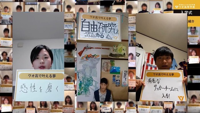 入学式からワオ高校の学びは始まっています。「ワオ高校の三年間で何をしたいか?」「どんな夢を叶えるか?」新入生一人ひとりが、コメント動画を通じて、これから共に学ぶ仲間や教員、保護者の皆様の前で所信表明を行いました。『人の心に寄り添う教育者になりたい』『新たなアプリを作って人を幸せにしたい』『海外で活躍する選手になる』『人を感動させる人になりたい』など、将来の夢を力強く発表してくれました。