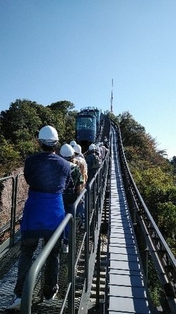 スロープカーの線路に沿うように設置されている点検用通路、通称「キャットウォーク」。いつもは、一般のお客様は立ち入ることができない通路ですが、特別にスロープカー中腹駅舎から山頂駅舎まで続くキャットウォークを開放します。普段は味わえない“スリル”と“絶景”をぜひご堪能ください。スタッフが同行してご案内いたしますので、10歳以上の方は誰でもご参加可能です。