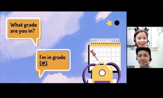 今回は、QQキッズ教師2名がイベントを進行。教師歴3年のDiamay先生とPaxton先生が登壇しました。