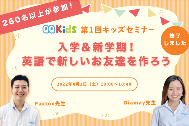 QQキッズでは「入学&新学期!英語で新しいお友達を作ろう」をテーマに、2022年4月2日(土)にキッズ向けの無料オンラインイベントを開催しました。