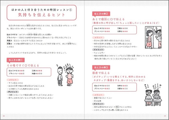 「気持ちと気持ちのぶつかり合い」「相手の気持ちを想像してみる」など18のテーマに沿って、これからの子どもたちにぜひとも身につけてほしい「自分やほかの人の気持ちとのつき合い方」を、解説→ワーク→解答例の3ステップで学べます。