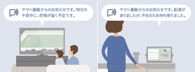 今回、ヤマト運輸のクロネコメンバーズ(※3)と連携し、ヤマト運輸が配達する荷物の「お届け予定通知」「ご不在通知」をパナソニックのスピーカー搭載の家電(※1)で通知します。新型コロナウイルスの感染拡大を背景に宅配サービスを利用する機会が増える中、宅急便のお届け通知が音声でお知らせされることで、家庭内での共有が進み、スムーズな受け取りをサポートします。
