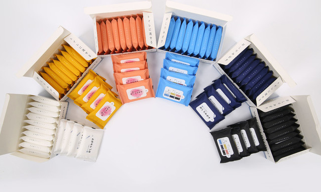 パッケージのカラーはホワイト、マスタードイエロー、コーラルピンク、コバルトブルー、ネイビー、ブラックの6タイプの中からご選択、最少ロット数は3,000個から、オプションのご選択で10個入りの箱入れも可能です。アドティッシュの売り、スピード納期の9営業日にも対応しています。