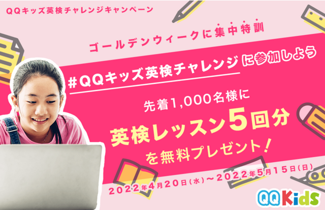 QQキッズでは、実用英語技能検定の2022年度第1回検定に向けて学習される皆様を応援する「QQキッズ英検(R)️チャレンジキャンペーン」を2022年4月20日(水)から2022年5月15日(日)まで開催致します。