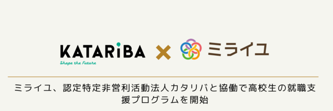 転職支援サービスを提供する株式会社ミライユ(本社:東京都新宿区、代表取締役:岡田 侑也、以下ミライユ)は、カタリバ(本部:東京都杉並区、代表理事:今村久美)と、高校生向けの就業支援プログラム(以下本プログラム)を開始しました。