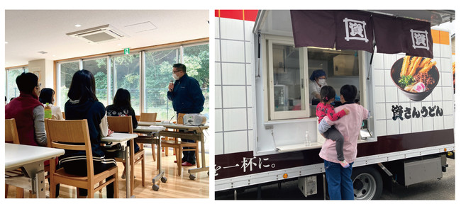 「資さんうどん」では地域の宝である"お子さま"に、"食"を通じて楽しみ・美味しさを感じて頂き、"食"がつなぐ交流の場を提供させて頂く「食育」に対する取り組みを行っております。また、2021年6月に「資さんこども基金」を設立し、地域の障がいのあるお子さまへの支援を行っています。