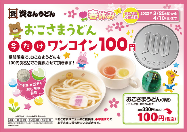 ■長期休暇期間中のお子さまへ全店舗にて"おこさまうどん"100円(税込)でのご提供
