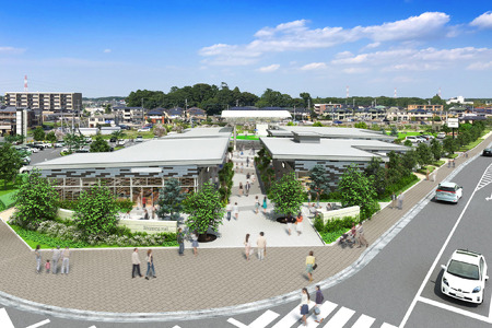 当施設は、守谷市の中心拠点である守谷駅近くの市有地に整備したもので、4棟17テナントで構成され、施設の中央には全天候型の大屋根広場を設けています。また、守谷市所有の自由度の高いオープンスペース「ブランチパーク守谷」(公共エリア)と隣接しており、買い物や飲食、サービスの利用だけでなく、市内外から幅広い人々がつどう交流の場としてご利用いただけます。