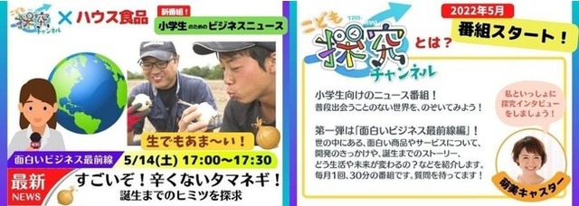 「こども探究チャンネル-面白いビジネス最前線編」の第1回配信は5月14日(土)17:00~17:30で、内容は「すごいぞ!辛くないタマネギ!誕生までのヒミツを探求(ハウス食品グループ本社株式会社)」を予定しています。