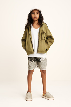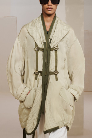 ■スタイリング: ビスコース素材のストーンカラーのMA1ボンバージャケットはドローストリングパンツと、マルチポケットのシャツジャケットはテクニカルテーパードパンツと組み合わせ、現代的なユニフォームとしてアップデート