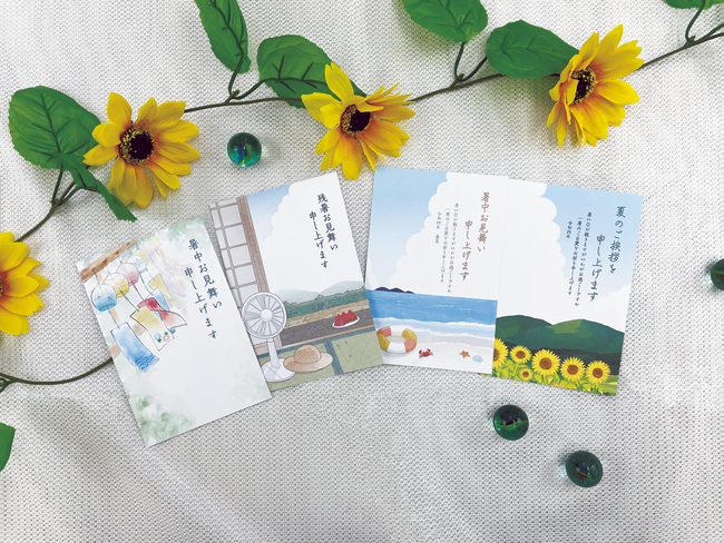 この度、郵便局限定販売商品として2021年夏に初登場した『あいさつ文入り夏の絵入りはがき』の2022年版の絵柄4種類が登場します。