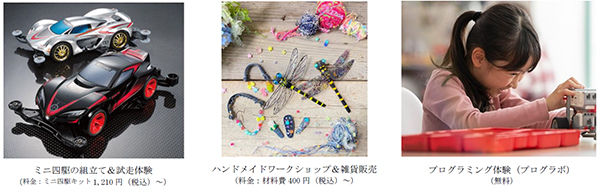 ミニ四駆の組立て&コース試走体験、プログラミング体験、阪神電車のペーパークラフト&塗り絵体験、ハンドメイドワークショップ&雑貨販売(手シゴトマルシェ)、鉄道グッズ販売等、創って学べるワークショップを開催します。※一部コンテンツは有料となります。詳細は現地ブースでご確認ください。