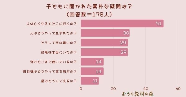 「子どもに聞かれた素朴な疑問は?」とアンケート調査した結果、1位は『人は亡くなるとどこに行くの?』でした。
