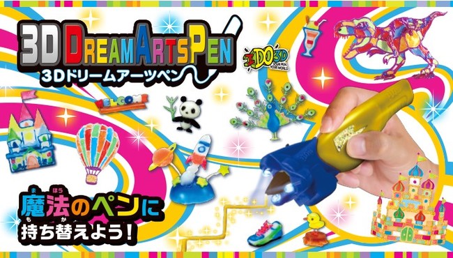 「3Dドリームアーツペン」シリーズは、ジェル状のインクを可視光線のライトで固めて立体物を作ることができる不思議なペンです。熱を使わない為お子様でも安全に遊べます。