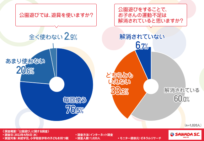 そこで今回、さわだスポーツクラブ(https://www.1975sawada-sc.com/)は、未就学児・小学校低学年の子どもを持つ親を対象に、「公園遊び」に関する調査を実施しました。
