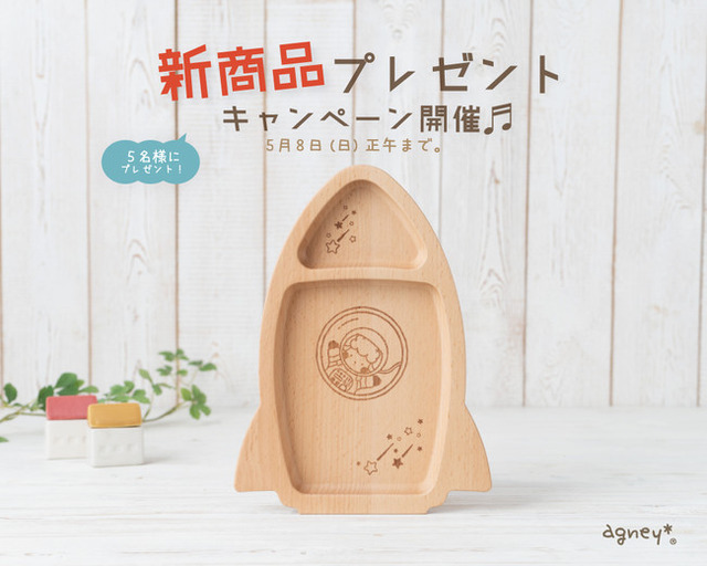 天然素材製品の製造販売を手掛ける仲吉商事株式会社(本社:埼玉県越谷市)は、ベビー・こども向けオリジナル食器の自社ブランド「agney*(アグニー) https://www.agney.jp」にて、「ロケットプレート」を発表。発売に先駆け、 5月8日(日)正午までアグニー公式ブログ『豆ログ』にて“新商品プレゼントキャンペーン”を開催。 抽選で5名様に新商品をプレゼントいたします。 (キャンペーン応募ページ▶︎https://agney.jp/blog//)
