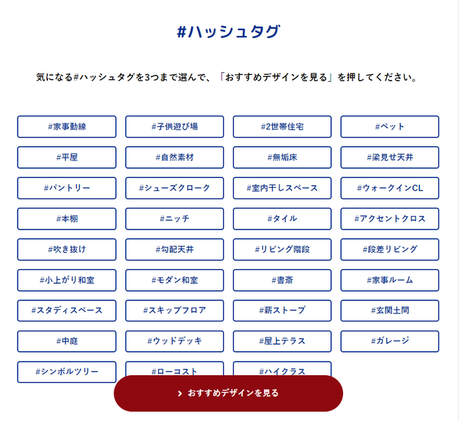 お客様は施工例を探す際、一覧で表示されたハッシュタグを選ぶことで、自分の気になる住宅成功例を効率よくルームツアーすることができます。
