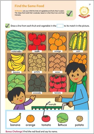 動物や食べ物、乗り物などの名前を覚え、語彙を増やすだけでなく、身のまわりのものへの興味も促します。