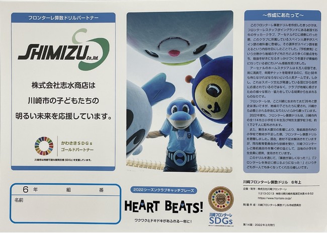 川崎市内だけでなく震災にあわれた子どもたちの“学び”を支えたい、その想いから今回川崎フロンターレが配布する算数ドリルのパートナーになることができました。