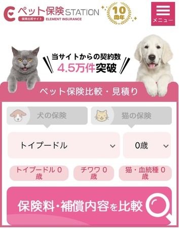 《株式会社エレメント》(本社:神奈川県川崎市、代表取締役:近藤勉)は、ペット保険比較サイト「ペット保険STATION(https://www.pets-station.info/)」からの契約件数が4.5万件を突破いたしました。
