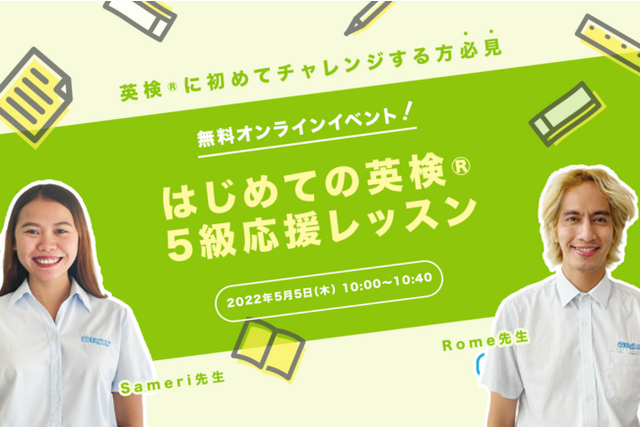 英検(R)️に初めてチャレンジする皆様に向けた、英検(R)️5級の頻出単語や簡単なフレーズを用いた無料のオンラインレッスンを開催します!