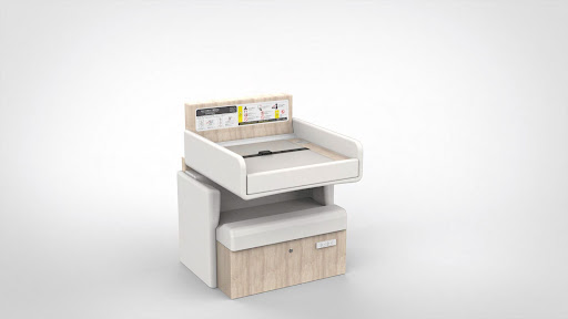 1台で授乳用ソファ、おむつ交換台、体重測定機能を搭載した3 in 1の機能を有する。