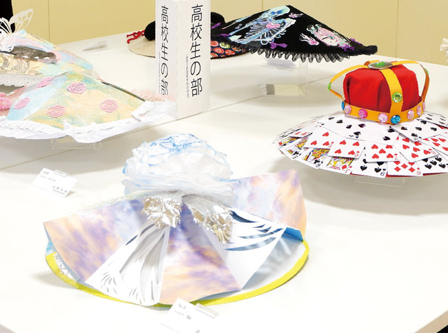 大学生の部1位は、越中福岡の特産であるコイのうろこをモチーフにした作品、高校生の部1位は、接着剤を固めて金魚を描いた作品が選ばれた。