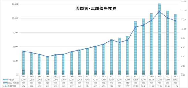 福工大の2022年度入試の志願者は10,746名となりました。18歳人口の減少によって特に地方大学は激しい志願者の獲得競争に晒されています。また、特に今シーズンは新型コロナウイルスの感染拡大、大学入学共通テストの数学の大幅な難化による受験控えなど、弊学にとってはマイナス要素が重なった年度となりました。こうした中でも福工大の志願倍率は5年連続で九州No.1を達成。コロナ禍の中でもキャンパスライフと学びの質向上を目指す対面授業の維持。学生たちの進路希望に応える高い就職力。実学で社会に還元する高い研究力が評価され、受験生に選ばれる大学として確かに定着しています。