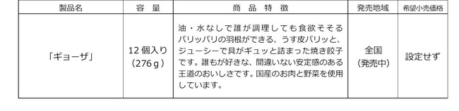 「ギョーザ」は、中具のお肉や野菜に含まれるたんぱく質やミネラル、皮に含まれる炭水化物などといった栄養を摂取でき、食べ盛りの子どもの“身体の成長”をサポートできると考えます。さらに、誰でも簡単に羽根がパリッとした餃子を焼くことができるため、子どもと一緒に調理することで料理する事への関心や達成感を醸成する“心の成長”のきっかけにもつながると考えます。