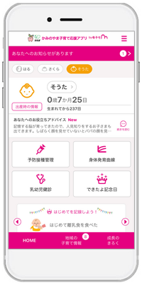 上山市に採用された母子手帳・子育て支援アプリ『かみのやま子育て応援アプリ』は、スマートフォン・タブレット端末・PCに対応したサービスで、妊産婦と子どもの健康データの記録・管理や予防接種のスケジュール管理、出産・育児に関するアドバイスの提供、離れた地域に住む祖父母など家族との共有機能や、市が配信する地域の情報をお知らせするなど、育児や仕事に忙しい母親や父親を助けてくれる便利な機能が充実しています。育児日記として使用できる「できたよ記念日」は、厚生労働省の母子健康手帳様式例などを元に作成し、子育ての思い出を残すだけではなく、子どもの成長・発達の目安としての役割も備えています。