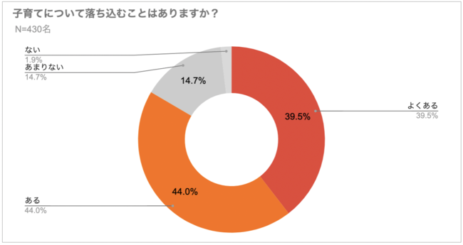 一方で、「子育てについて落ち込むこと」について問うと、「落ち込むことがある」と回答した人は、83.5%にのぼり、多くの人が子育てに悩み、落ち込みながらの日々を過ごしていることがわかりました。