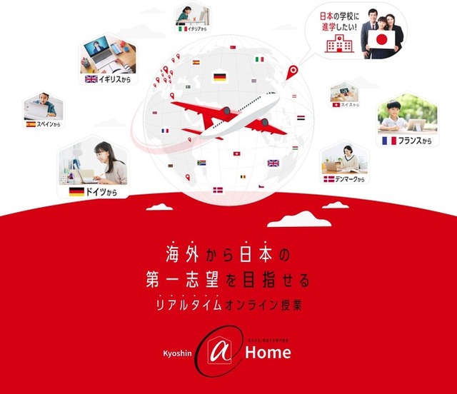2022年4月末現在、サービス利用者は欧州を中心に北米・アジアへと広がっています。2022年度入試において、Kyoshin@Homeを利用した受験生(第1期生)は6名、志望校への合格は第一志望合格4名、第二志望合格2名となりました。日本国内以上にコロナ禍が深刻だった海外各地では、学習塾へ通うことが困難であったり、近隣に日本の受験・学習に対応した教育施設がなかったりしたご家庭から、住む環境に左右されることのない学習サービスを望む声が多くありました。こうした声に応えるために提供を開始した本サービスは、時差の影響なく受けられるオンラインの授業の利便性と、学習についての情報の共有が、志望校への受験対策に安心して取り組めたと好評を得ています。