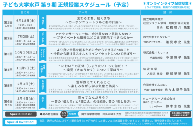 9年目となる今期は、更にパワーアップした講義で、日本・世界中から子ども大学に入学する学生を募集します!