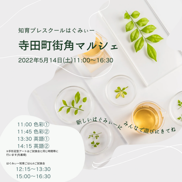 15:00~16:30 はぐみぃー知育ごはん(R)試食会&手形足形アート