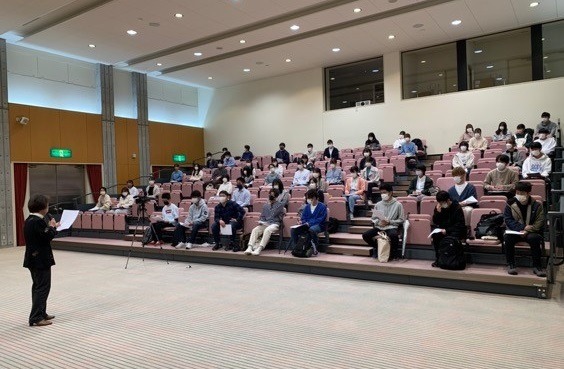 4月21日(木)、元外務省研修所講師の松本洋子先生を講師にお招きし、「中国語における声調の重要性」をテーマとして、中国語学習講座が開催されました。浜田キャンパスで、4月から新たに中国語を学び始めたばかりの1年生52名が参加しました。
