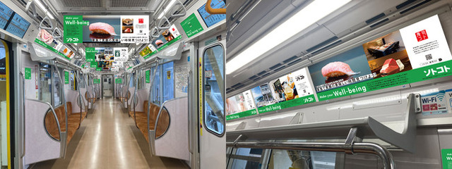 「ソトコト×寿司コト」プロモーションでは、メトロアドエージェンシーが提供する東京メトロ 貸切電車 Gライナーフレックスで銀座線1編成をジャックしたプロモーションを実施します。スイッチスマイルは各車両にビーコンを設置し、対象車両の乗客に連携するアプリで「ソトコト×寿司コト」を告知するプッシュ広告を配信します。