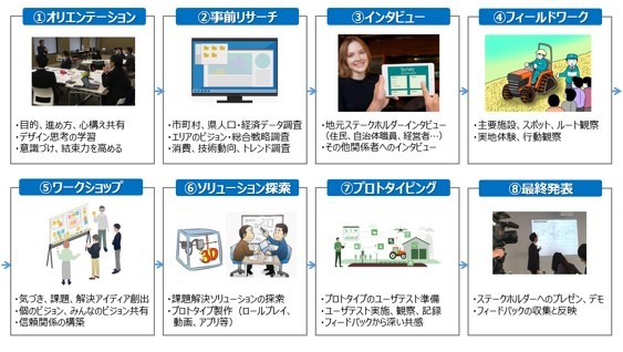 また、NTT東日本は、デザインシンキングを通して、地域社会が抱える様々な課題解決に向けたビジネスモデルの仮設・検証を実施し社会貢献に取り組んでまいります。