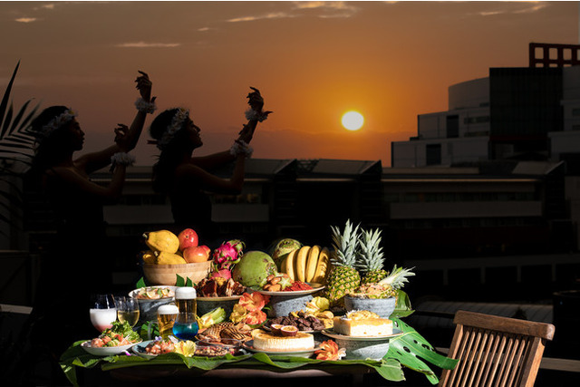 ハワイのハイアット リージェンシー マウイ リゾート&スパより、シェフGevin Utrilloから取り寄せたレシピのメニューがブッフェスタイルで並びます。また、8/6(土)~15(月)は、同シェフGevinが来日予定。さらに週末などは、フラダンスショーを予定しており、心地よい屋上ガーデンで癒されながら、食べ放題・飲み放題のハワイアンブッフェとともに、リゾート気分でお過ごしください。