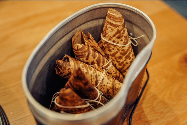 BUB RESORTのキャンプ飯シリーズの一つとなっており、お子様と一緒に手軽に作れるキャンプ飯。竹の葉でお米やおこわの素を包み、それを飯盒に入れBBQ中にグリルで蒸して完成です。簡単に作れますが、出来た時の達成感は非常に大きいです。