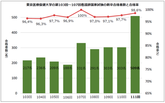 学校法人 青葉学園が運営する東京医療保健大学(本部:東京都品川区、理事長:田村哲夫、学長:亀山周二、以下本学)は、第111回看護師国家試験にて、四年制大学で全国最多の509名の新卒合格者を輩出いたしました。